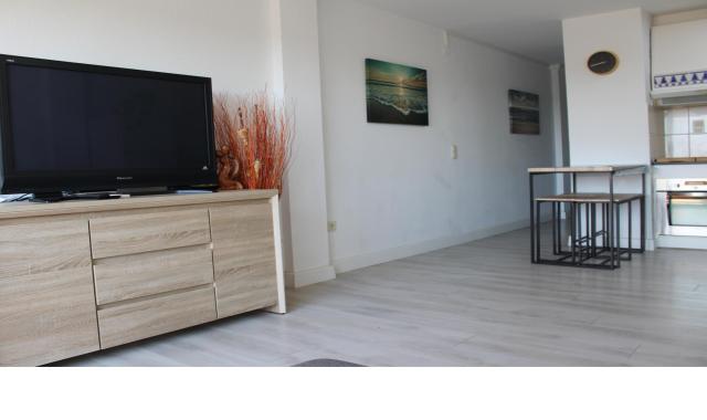 Il comprend une chambre, un séjour/salle à manger avec accès direct à la terrasse, une cuisine américaine, une salle de bains avec douche et la climatisation réversible. Commerces et restaurants à proximité.