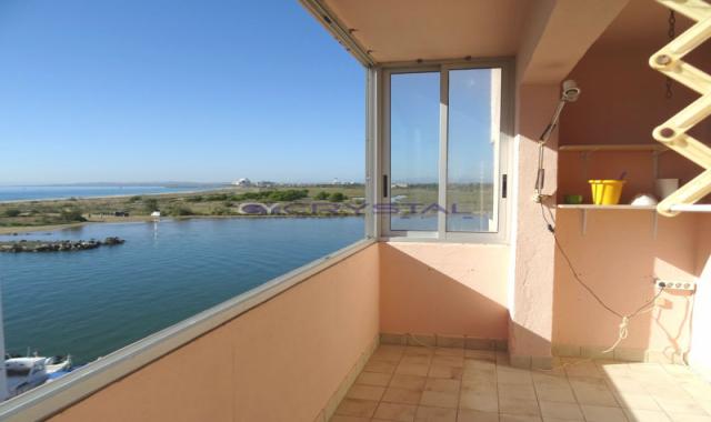 Surface habitable de 52 m² comprenant une chambre double avec placard, une salle de bain avec baignoire, un séjour spacieux avec cuisine américaine et une terrasse de 12 m² belle vue mer et canal.