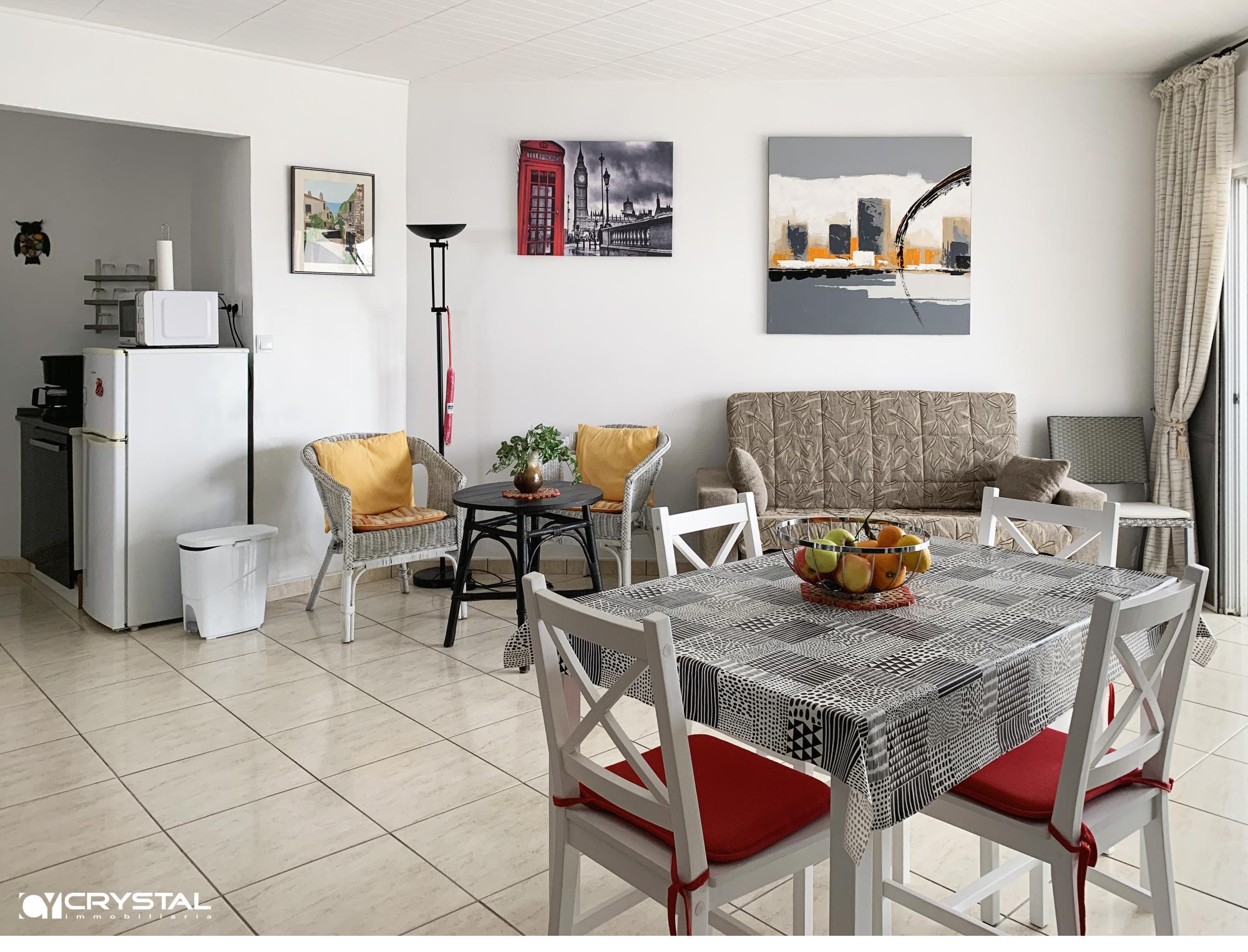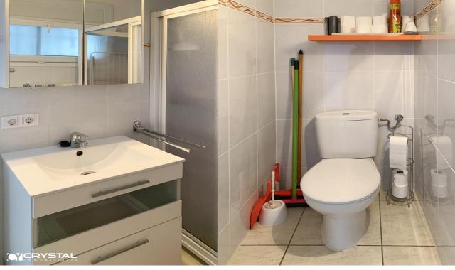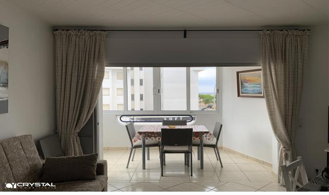 Consta de 2 bonitos dormitorios (1 dormitorio doble principal con armario separado y 1 pequeño dormitorio individual/doble con armario empotrado), cocina americana, baño con ducha y WC separado, salón luminoso y una amplia terraza cubierta. Cerca de todos los comercios y actividades turísticas. La playa y el paseo marítimo están a sólo 50 m del edificio. Lugar ideal para tener una segunda residencia en Rosas o vivir allí todo el año.