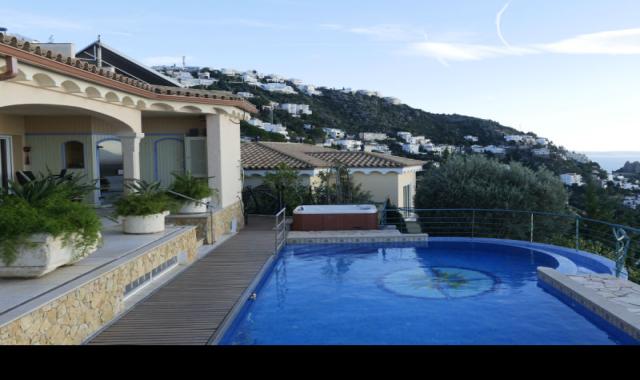 Construite l'année 2002 avec matériaux d'haute gamme cette imprenable villa à une surface habitable approximative de 350 m² et un terrain de 1.784 m². Divisé en deux niveaux comprenant 4 chambres, toutes avec une belle vue mer, quatre salles de bain, une grande cuisine équipée et un salon avec cheminée. Elle à aussi une grande terrasse de 100 m² exposé au sud avec piscine privé, jacuzzi et cuisine extérieure.