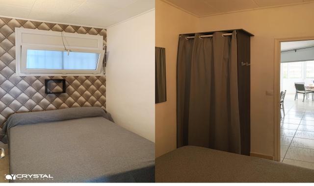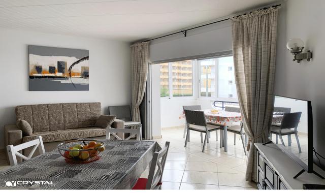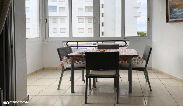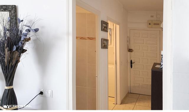 Consta de 2 bonitos dormitorios (1 dormitorio doble principal con armario separado y 1 pequeño dormitorio individual/doble con armario empotrado), cocina americana, baño con ducha y WC separado, salón luminoso y una amplia terraza cubierta. Cerca de todos los comercios y actividades turísticas. La playa y el paseo marítimo están a sólo 50 m del edificio. Lugar ideal para tener una segunda residencia en Rosas o vivir allí todo el año.